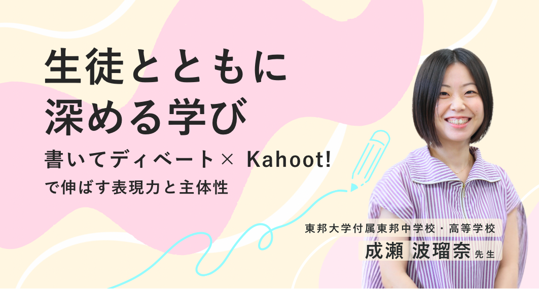 限られた授業時間の中で教えるべき内容が多く、どのようにしてアウトプット活動へつなげるか悩んでいる先生も多いのではないでしょうか。東邦大学付属東邦中学校・高等学校の成瀬波瑠奈先生は、特にライティングに重点を置き、「書いてディベート」や生徒自身が問題を作成するクイズなど、生徒が主体的に関わる活動を実践しています。こうした実践を支えているのは、上智大学大学院のTESOLコース(英語を母国語としない人々に英語を教えるための専門的な教授法および、それを学ぶ学問分野)で学んだ理論と、学び続ける柔軟な姿勢です。理論に裏付けられた指導法をもとに、生徒とともに学びを作りあげる授業について、成瀬先生にお話を伺いました。