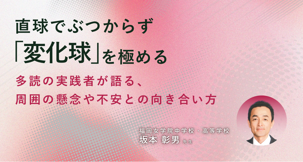 教育現場において新しい取り組みを始める際には、必ずと言っていいほど周囲の不安や懸念や反発という壁にぶつかるものです。福岡女学院中学校・高等学校で「多読・多聴」をはじめとする英語教育の実践を続けてきた坂本彰男先生も、数々の試行錯誤と葛藤を経験されたお一人。本記事では、坂本先生の教育の原点となる出会いから、失敗とリカバリーのプロセス、そして「変化球」を極める重要性について伺います。