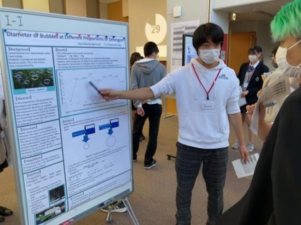 (本多)発表の在り方や授業の進め方は、立命館中学校・高等学校のお取り組みを参考にさせていただいています。(参考:研究発表をモチベーションにつなげた実践紹介 日本人生徒をサイエンスの国際舞台で活躍できる人材に! | 国際教育ナビ)同校に視察に行った際、研究内容や成果を活き活きと嬉しそうに語る生徒の姿を目の当たりにし、「こんな生徒を育てたい!こんな活動を目指したい!」と強く思ったのです。ただし、立命館では2年間かけてじっくりと取り組んでいるため、本校の1年間という期間の中で実現可能な形に調整していきました。