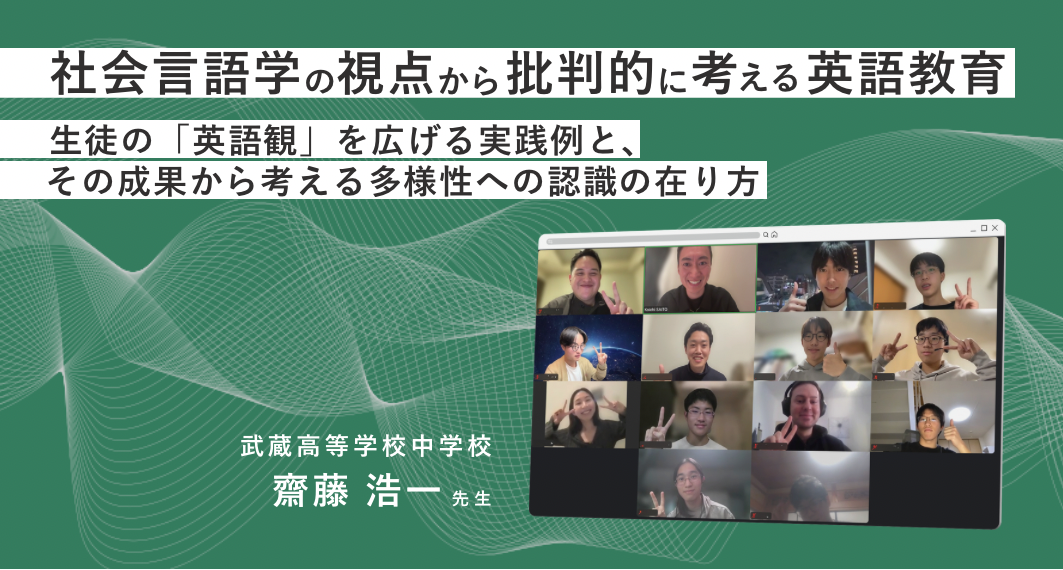 生徒にこう問いかけるのは、武蔵高等学校中学校の教員であり、早稲田大学大学院博士課程に在籍する齋藤 浩一先生。専門である社会言語学の理論に基づいて、生徒に英語の多様性に触れる機会を提供し、「英語観」を広げることを目指した取り組みを実践しています。
