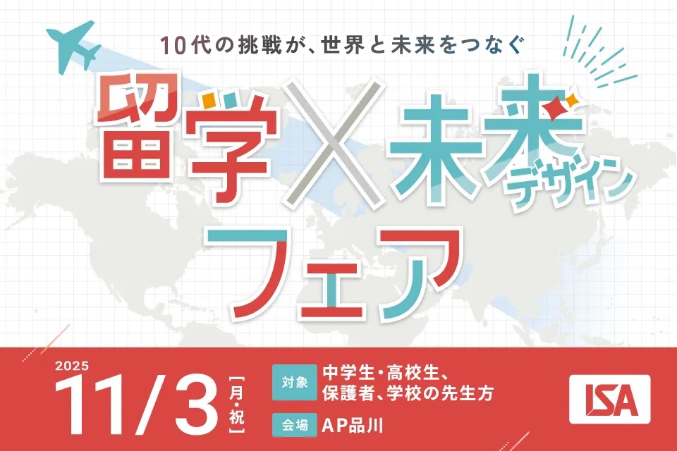 ISA留学×未来デザインフェアでは、先輩の体験談や現地教育のリアルな話、大学進学や準備のステップまで、未来を描くためのヒントをお届けします。